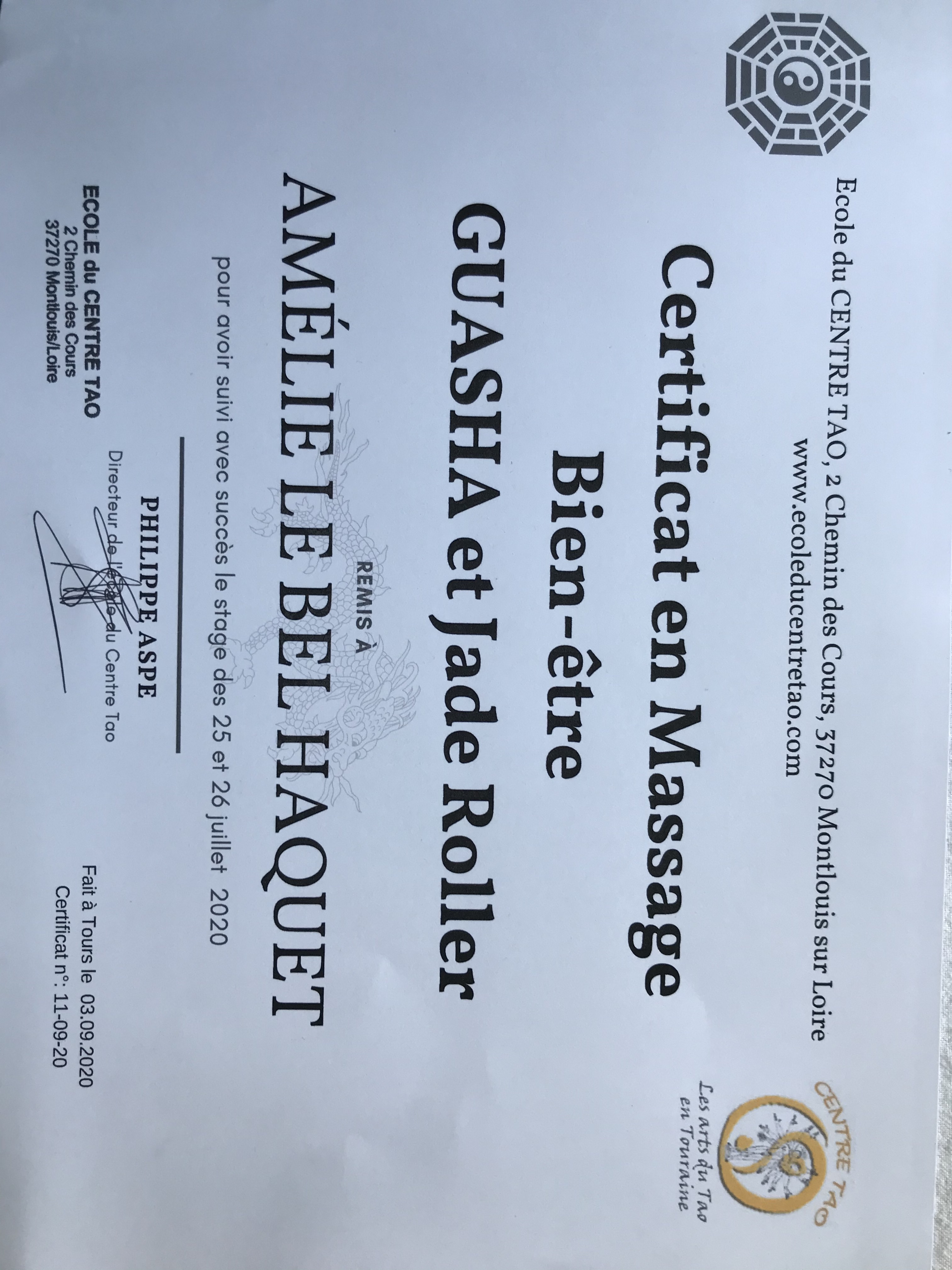 Je pratique le massage gua sha bien-être. Il s'agit d'une technique asiatique traditionnelle très ancienne qui signifie "disperser les énergies stagnantes". Il se pratique par des effleurements le long des méridiens d'énergie, sur tout le corps habillé, à l'aide d'un outil plat appelé "gua sha". J'utilise différents gua sha (bois, pierre, corne, cristal de roche) car chaque matière apporte un équilibrage spécifique pour le corps. Les outils sont nettoyés et purifiés avec soin après le massage.